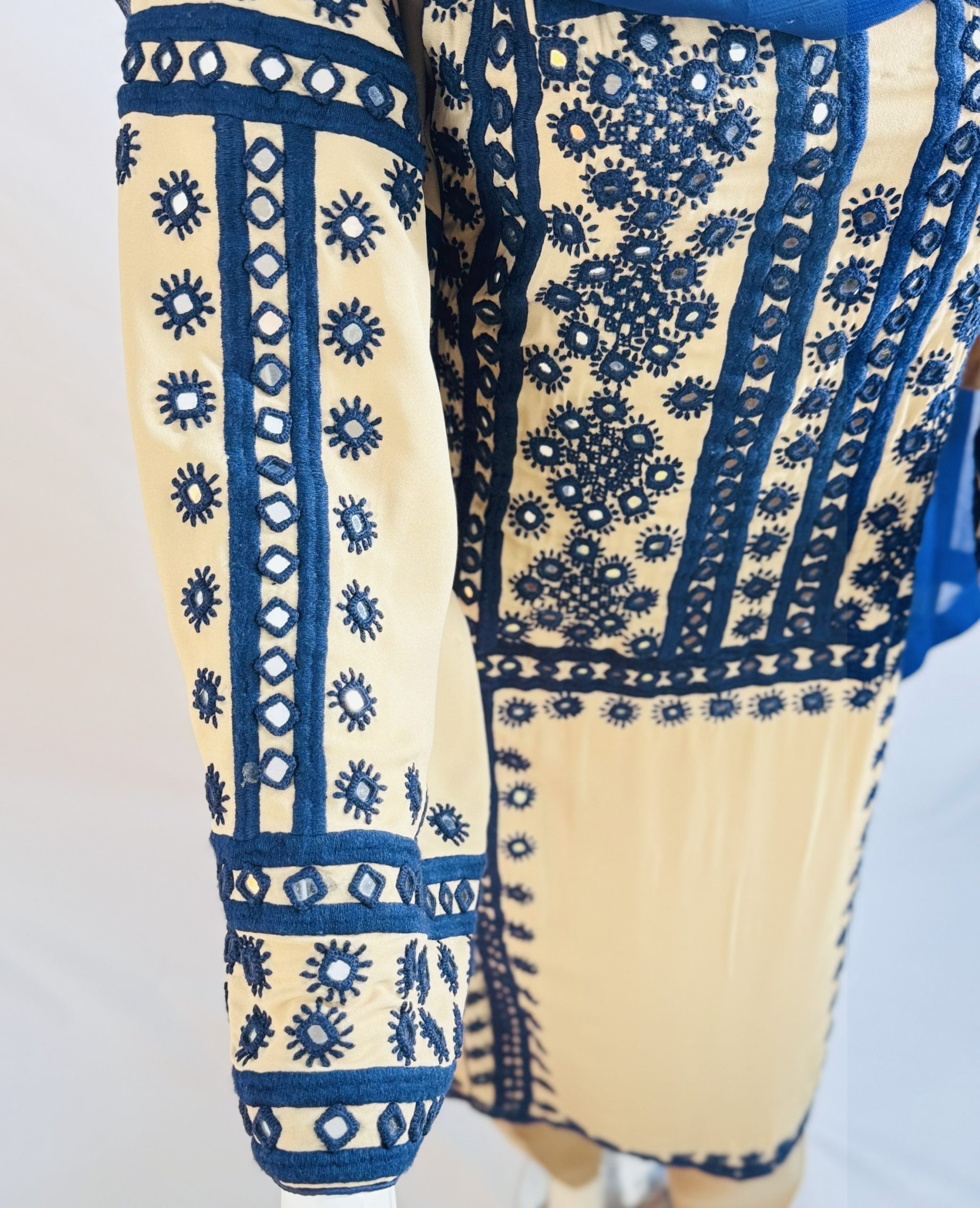 AFNM COLLECTION-Two-Tone Three Piece Casual Dress in Cream and Blue