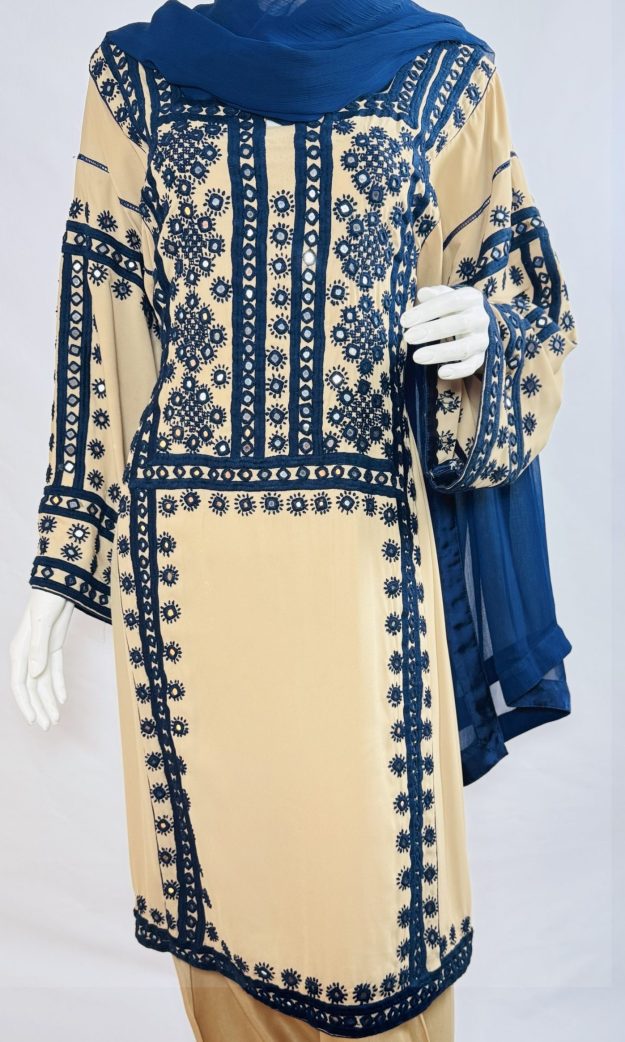 Be the first to review “AFNM COLLECTION-Two-Tone Three Piece Casual Dress in Cream and Blue”