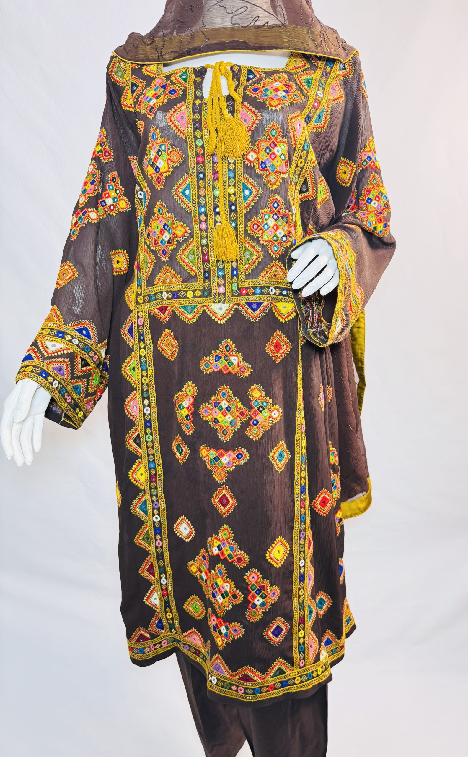 Be the first to review “ZAFNM COLLECTION Women’s Brown & Multi-colour 3-Piece Dress Set”
